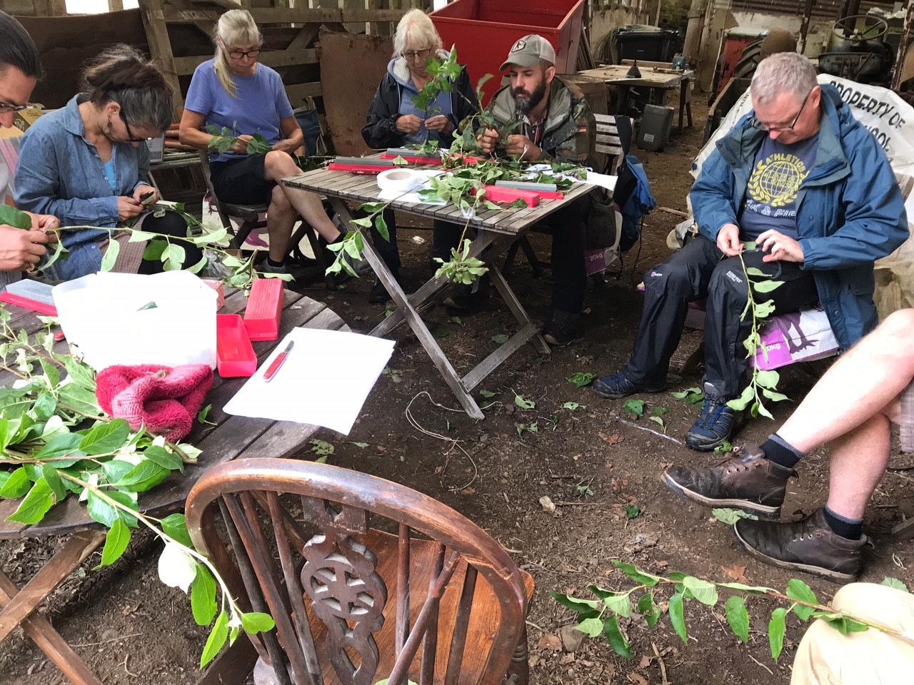 The weather improved in the afternoon for the grafting activity and after some concentrated practise with chip budding we were able to have a go on pretend rootstocks.